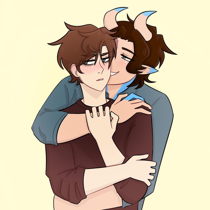 (Damien is the demon with angle wings and syd is the hooman he’s holding)