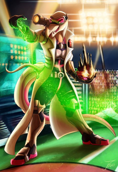 Healer Shiny Salazzle Superhero, mixes her defective, non-enticing pheromones with chemicals to heal others...though can't heal herself. Unlike the norm she's a Salazzle who can help everyone BUT herself with her powers.