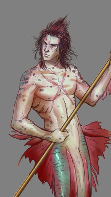 Quick mer!terra design done! I used a lot of green/red on him to give a more realistic dark fantasy look and integrated his keyblade design into the trident