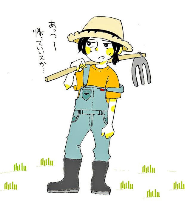 フォロワーさんとの会話から爆誕した、麦わら帽子+長靴+オーバーオール=農業ビッケ🍊🍊