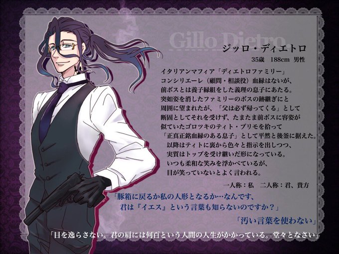 ノア・イリア兄妹は言わずもがな。ルイスとルドルフの2人も実は大好き。酒と煙草が似合う(似合いそうな)男性が好きっていうのもある←