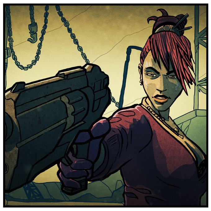 Before we came up with the fully painted illustration style for the Arkhunter Chronicles, I did a bit of mucking about with some other styles. @defiancegame @SyfyUK @HuntersSyfy #gamer #computergame #gaming #videogame #drawing #illustration #advertising #visdev #visualdevelopment