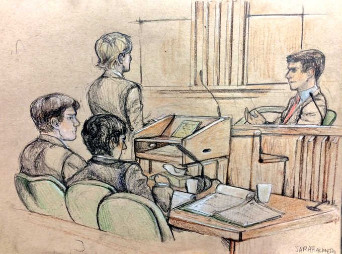 My phones about to die! But here's my round 2 sketch: defense attorney Hanlon examining the defendant! #shmuhInIdaho