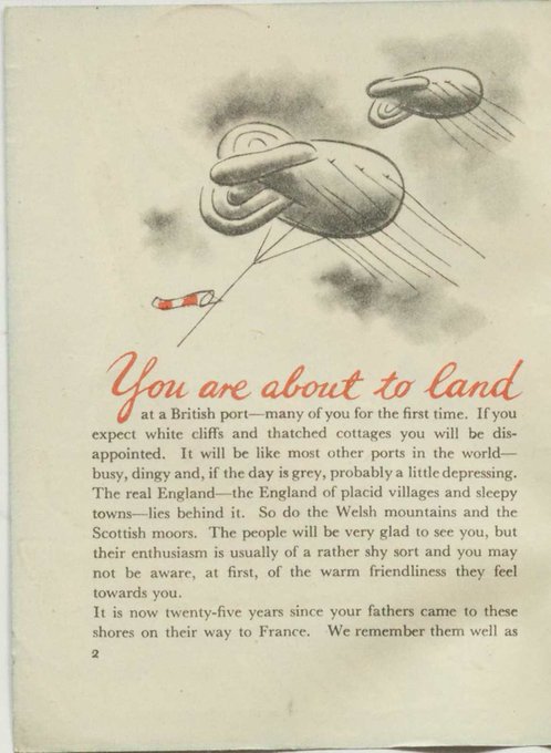"You are about to land", 1942: attempting to explain #WW2 UK to US servicemen ("enthusiasm is of a rather shy sort") https://t.co/Klrs318BpK