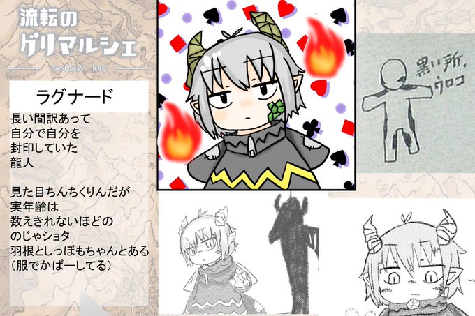 流転のグリマルシェ、こんなキャラで、遊んでいます。大陸上陸の目的はお金。具体的には、仕送りと、安定した老後。細かい事は、また後程。
