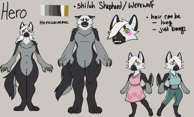 New Ref Sheet for Hero! Old is the purple ref, new is the gold! <3 This time I was able to include her Wereform.