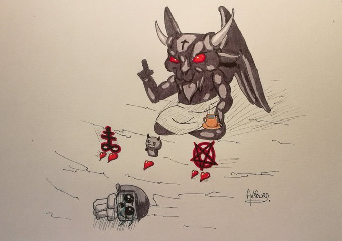 Le poti dessin de #drawwhatever d'Isaac et de son devil deal aux petits oignons