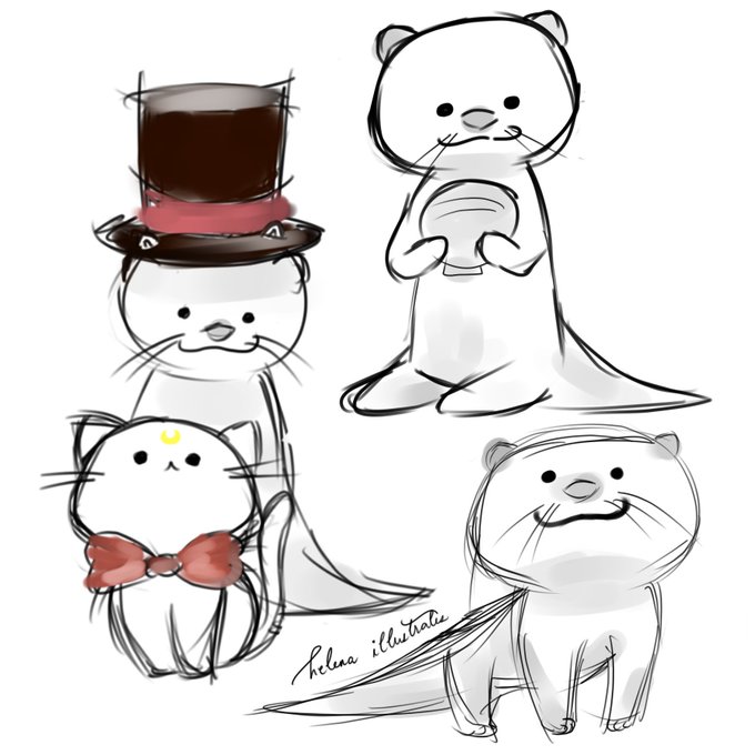 Felt like doodling a lot today so here's another set of doodles. I revised my little otter and he's cuter now. Also, say hello to Sailor Kitty and Tuxedo Otter.