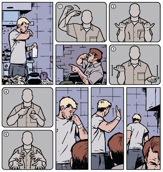 here are some more panels of clint being explicitly hard of hearing in the comics,,