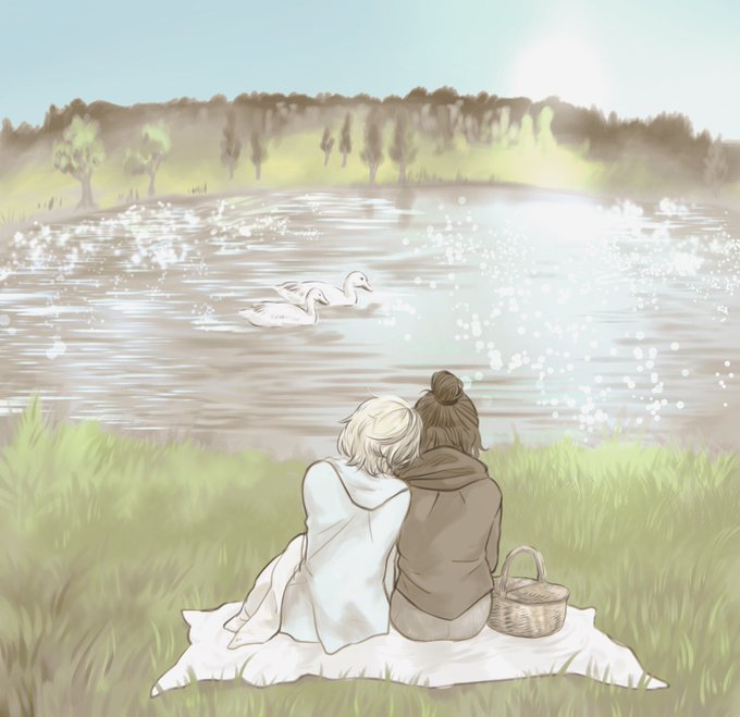 もぐさん(@mmg9979 )のファンアートを小説の挿絵として描かせて頂きました。もぐさんの書く美しい世界には程遠いですが見てやって下さい。https://t.co/meWpDF89RP