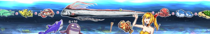 リュウグウノツカイモチーフ+描きたい海ものを詰め込みました🐟