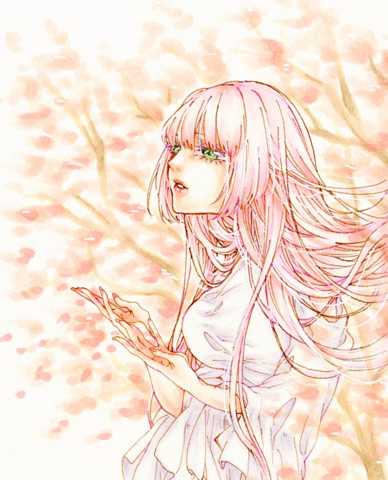 何年か前に描いた白色世界で桜カラーの絵があった。また違う子たちでも描けたらいいな。