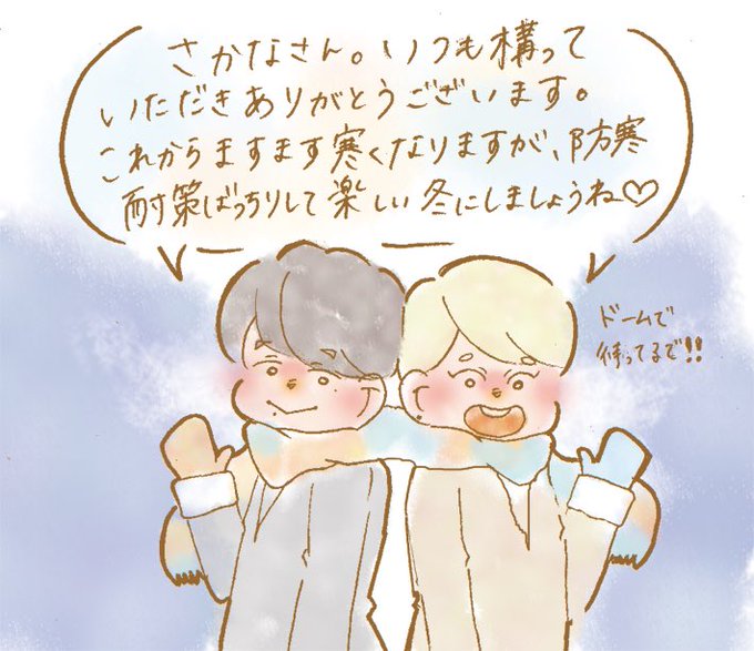 さかなさん(@yamada_83 )からのお願いの山田〜!!描いてからマフラーどうやって巻いてんだ…?ってことに気づいたんですがそこは目をつぶってください😂2枚目はおまけです