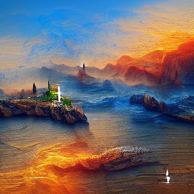 #minato #lighthouse #todai #ocean #oceanview #island #paint #sea #sky #sunrise #AI #Nightcafe