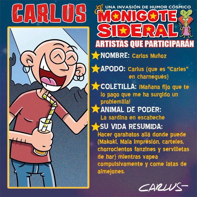 Hoy os presentamos a otro dibujante que colaborará en El Monigote Sideral: @carlus_comics que, además, es el papi del marcianete mascotero de la revista.