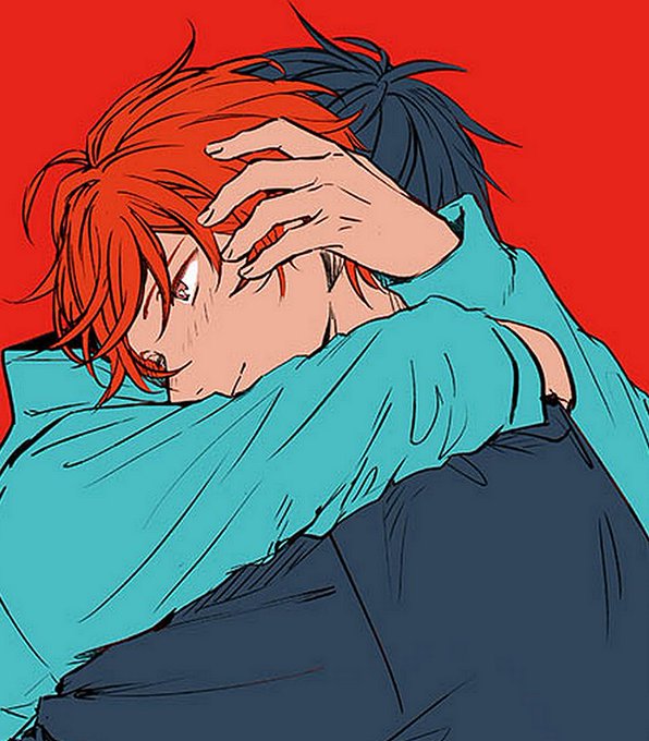 first commission done!! @starlightfruit 's OC Key and Kabu! all snuggled up 💖