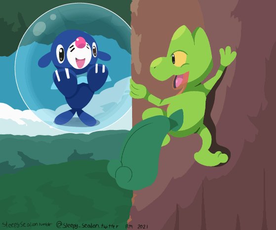 Treecompany. #pokemon #pokemonfanart #pkmnart #popplio #treecko