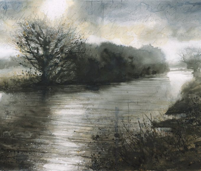 ‘Cloudburst’ ink, watercolour and charcoal. From a walk along the Stour unsuccessfully dodging the rain. Part of @TheArtStable summer show