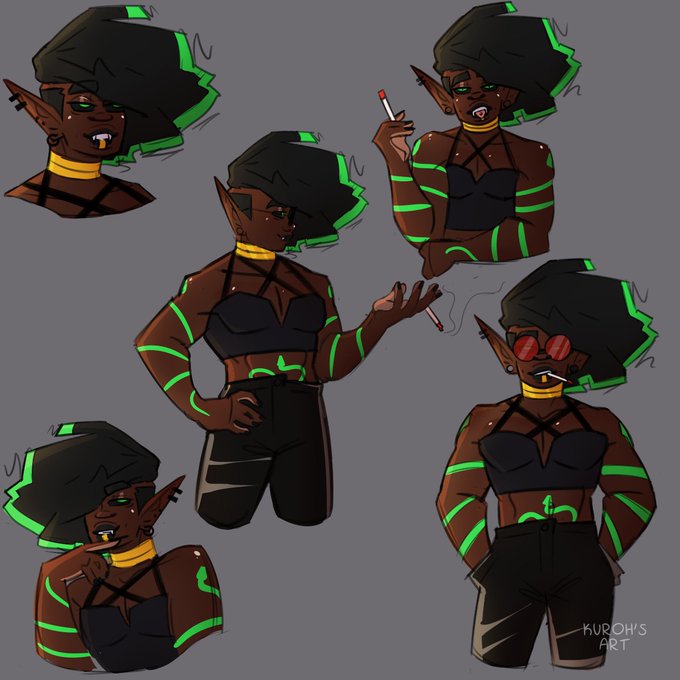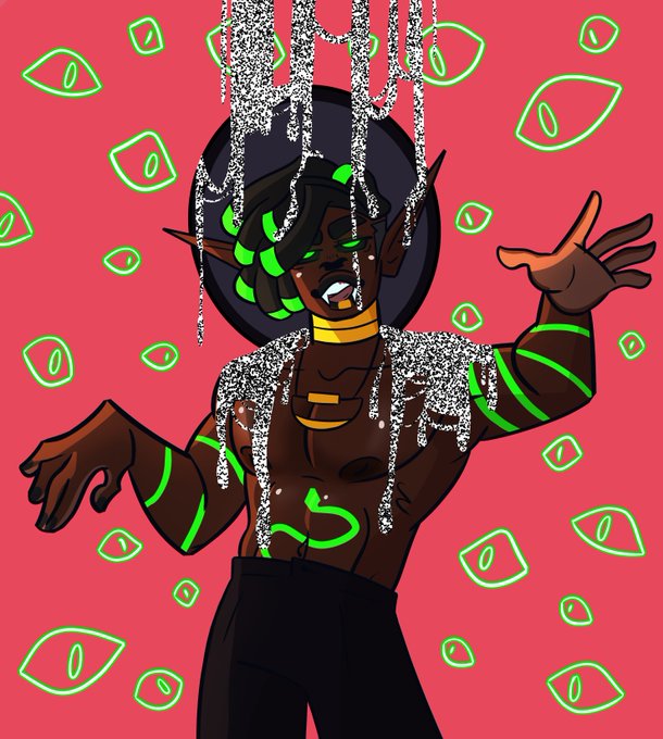 @nelmdraws Thaxx Valdez (They/Them) Is my comfort oc. A suave and mysterious witch that has a very flirtatious demeanor.Tho don't let their charming smile fool you, they are deadly as they are attractive! I hope they can cheer you up!