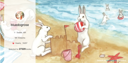 Do bunnies really enjoy spending the day on the beach? It seems they do! Anything is possible with imagination! Today's featured artist bluedogrose captures all of the best moments. Check out her art for your stories! #KidLitArt
