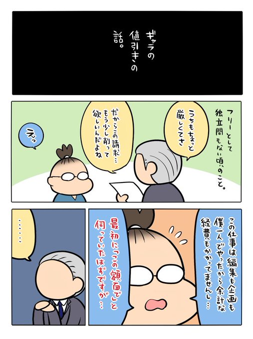 作画担当がKDPの拙著「広告まんが道の歩き方」を漫画化してくれたPart18。これも実話。25年くらい前のことで、場数を踏んだ今ではこういうタイプにも毅然と対処できるけど、若い頃は何度も泣かされてた。高い授業料だったなぁ(苦笑)