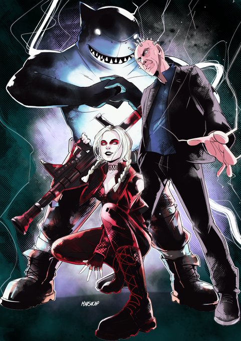 👀Pretty cool #fanart by talented @Pepperstable depicts #TheSuicideSquad members #HarleyQuinn, #KingShark, #Savant and #PolkaDotMan. #SuicideSquad #inspirational
