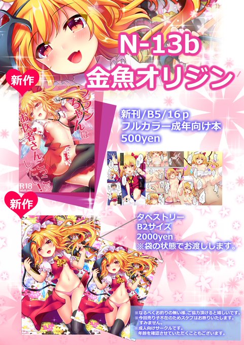 【宣伝】5月7日の例大祭14でフランちゃん本とタペストリー頒布します。他既刊も再販致しました。ポスターは2時半頃に抽選いたします。当日はよろしくお願いします!