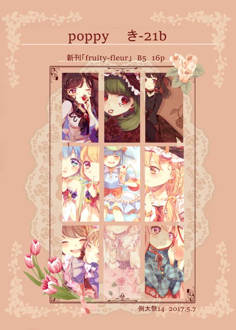 5月7日例大祭14新刊サンプルです!当日スペース【き-21b】にて頒布します...!お花と果物がテーマのフルカラーイラスト集(B5、16p、500円)です!ゲストとしてうー子ちゃん、ひゆうさんに描いていただいてます!どうぞよろしくおねがいします~~~