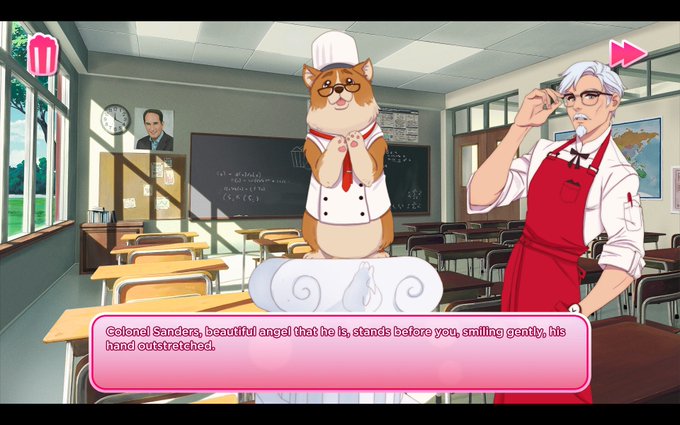 Everyone come watch @toradora5683 play the KFC dating sim on twitch