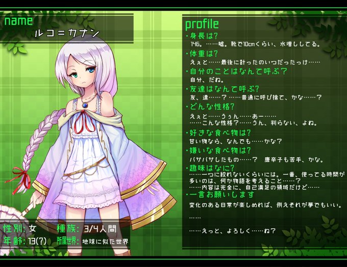 全身絵ができたのでキャラシもお借りして…!