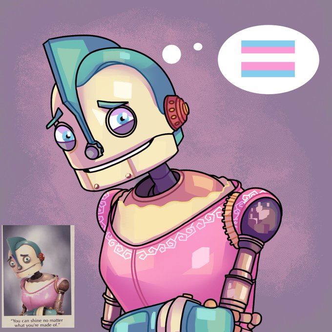 One of my favorite childhood cartoons is Robots. And this scene where he had to wear woman’s parts in his puberty was so trans coded 🏳️⚧️