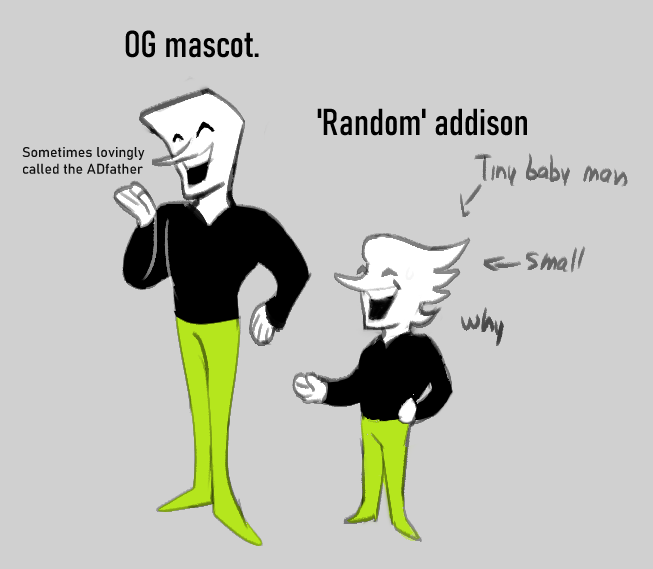Addisons appearance are based on a light world internet mascot for a huge advertising site back in the 90s.Even if the mascot isn't used anymore the spirit of what it encompasses makes addisons take its original shape