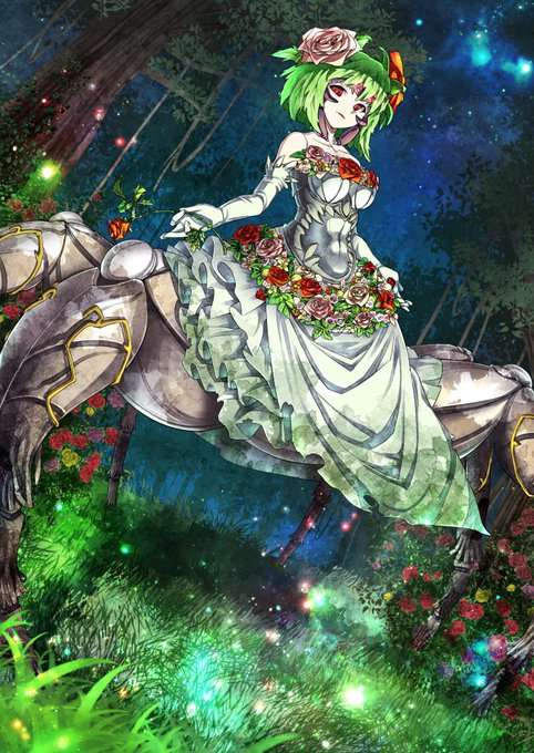 やもいげーむずさんのカードゲーム「エンゲージクロス」より、【虚実振りまく者シェルバイト】です。アヅチグモという白い蜘蛛がモチーフです。花に同化するような純白さから、ウエディングドレスをイメージしてデザインしました。約二年半前に描いたイラストになります、お気に入りです😊