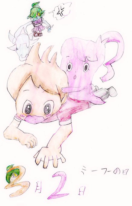 3月2日なのでミーフーの日♪ ということで、ミーフー&ケータきゅんと、ヤキモチ焼いてるオロチ。