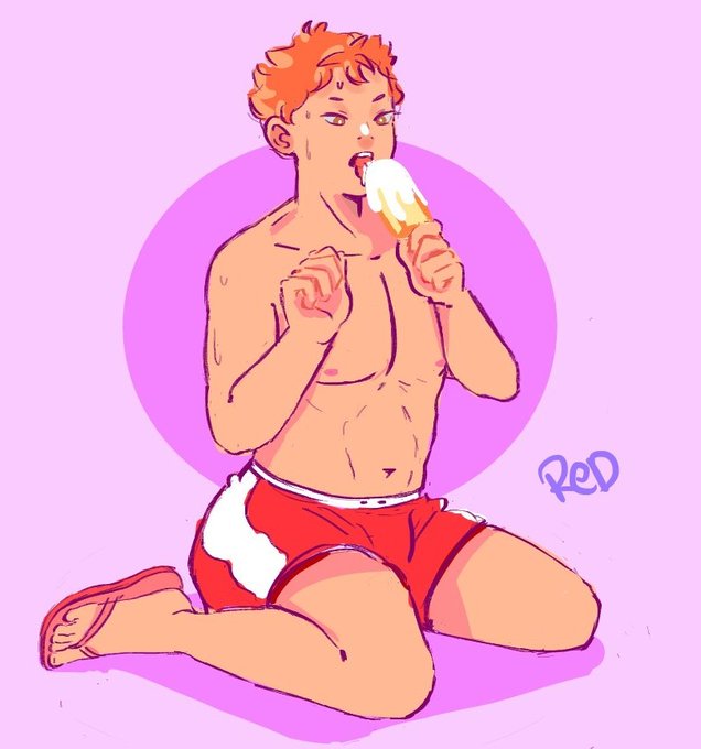 DAY 5 OF #SweatyShoyoWeek!!! he's considering a second popsicle #hinatashoyo #hinata #haikyuu