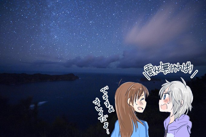 今日のではないのでアレですけど2日前に小笠原で撮影したやつです…!台風が来てたのでどうしても雲が…(無ければ完璧だった)それでも流れ星や天の川が見れたりしました。すごかった! #シンデレラの観測会