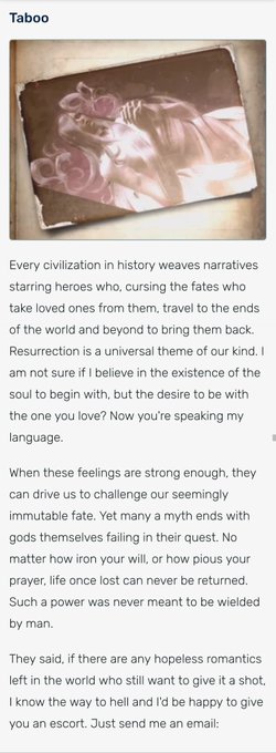 - Ingame journal called Taboo, with a pic of Jeanne, describing Bayo as a hopeless romantic in her quest to rescue Jeanne