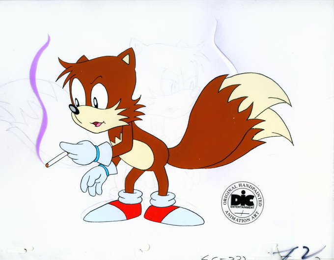 Animation cel of Tails smoking from the infamous anti-smoking sonic says segment