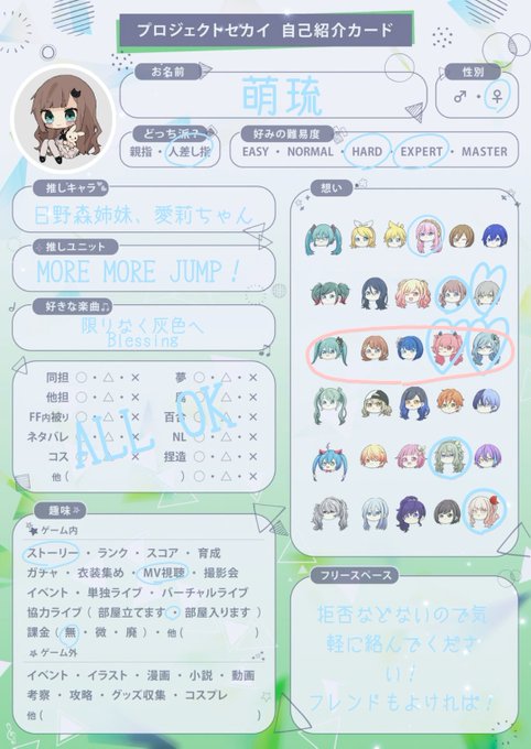 #プロセカ #プロセカ好きな人と繋がりたい #プロセカ自己紹介カード #プロセカ募集