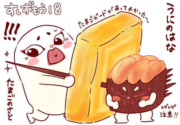 とげとげ怖~!でも強すぎる武器は弱点にもなってしまうのがすしずもう界…🍣ひるまず立ち向かったたまごのさとかっこいいぞ!