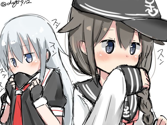 麦茶さん(@dogs912) とお題交換してひびしぐ描き。 もらったお題「恋人つなぎ」 時雨「響…。あんまり人の目のあるとこでこういうのは…////」 響「ん…?何が?(ニヤニヤ」