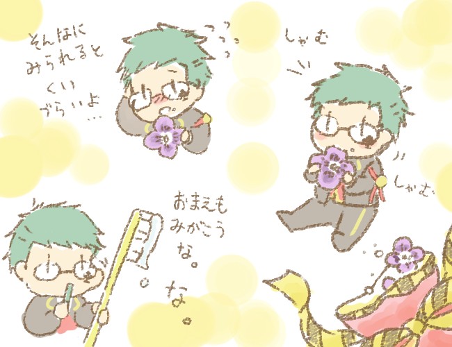 @riniko7911 りにこさんにスミレの砂糖漬け貢がれてるキッチンの妖精トレイクローバーめちゃ可愛いなと思いつい描き殴ってしまいました!!!!🧚♂️🌼