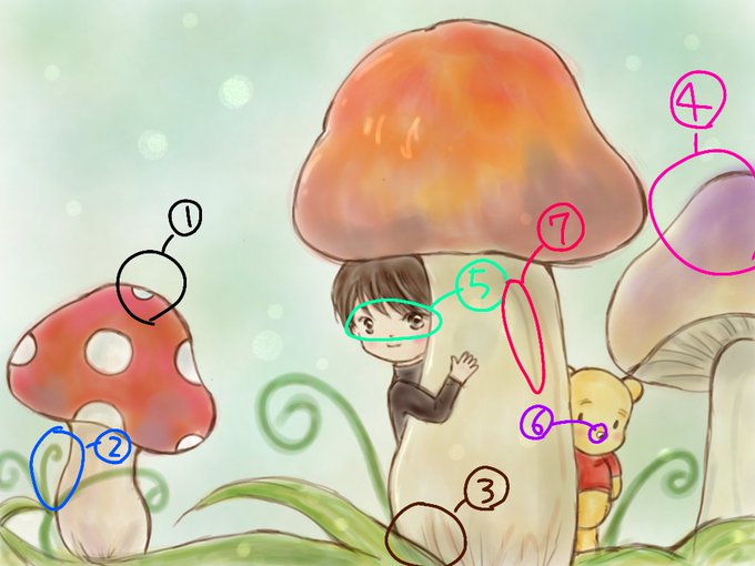 ①きのこの模様が1つ多い🍄
