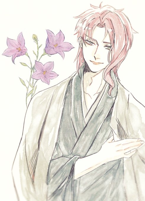 光秀さんと一輪の桔梗を持ってるんだけど…桔梗の花言葉は『永遠の愛・変わらぬ愛』エモ…🤦♀️💕