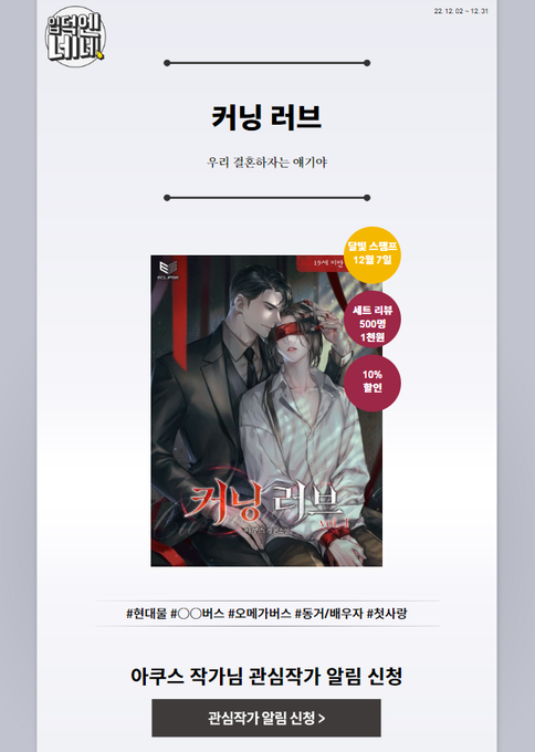 아쿠스 작가님의 <커닝 러브(Cunning Love)> 예스24 2차 출간💕