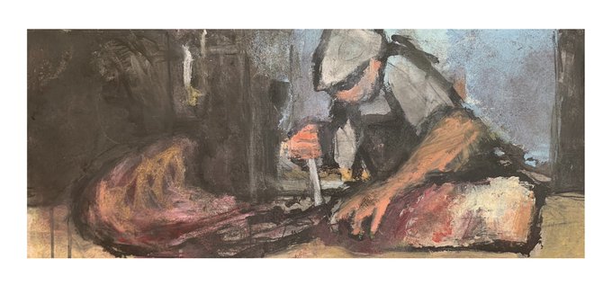 The Butcher. Oil painting and preparatory sketch. I’ll be sharing my journal entry for week 3 of #NewcastleCommon over on @appetitestoke later today...