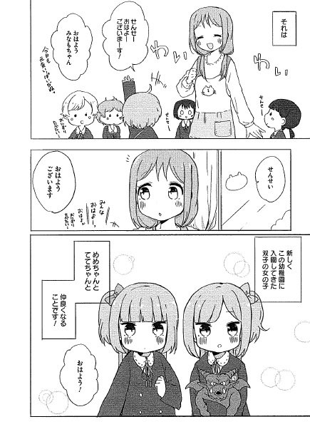 新しく保育園に入園してきたかわいい双子のめめちゃんとててちゃん。