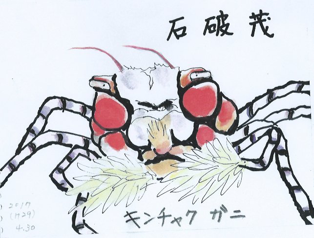 これも秀逸だ。このカニが「軍事を知らずして平和を語るな」などと言っても違和感がない。イソギンチャクをはさむ力に、国防への熱い想いがうかがえる。プラモがご趣味で、キャンディーズファン。