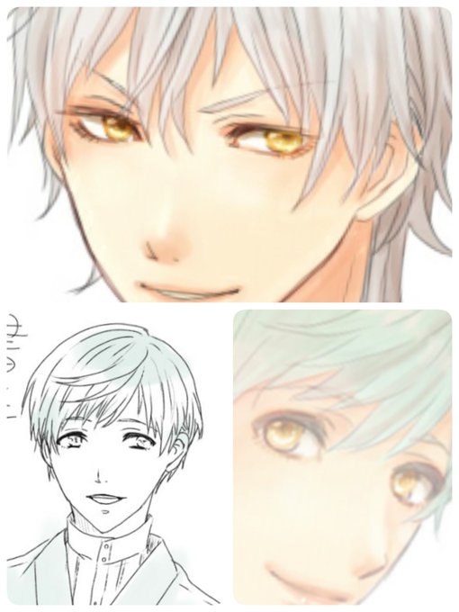 マイペースおっとりな介護されたいトラフズクくん、2枚目は瞳の色比較用(左:通常 右:興奮時)、自称硝子で出来てます♡な養って欲しい系男子。歌は大好きなので褒めると上機嫌で歌い出します、