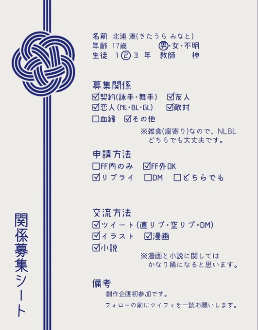 初の企画参加でにっちもさっちも分からない初心者ですが、仲良くしてやってください……。(RT、空リプ多めです)